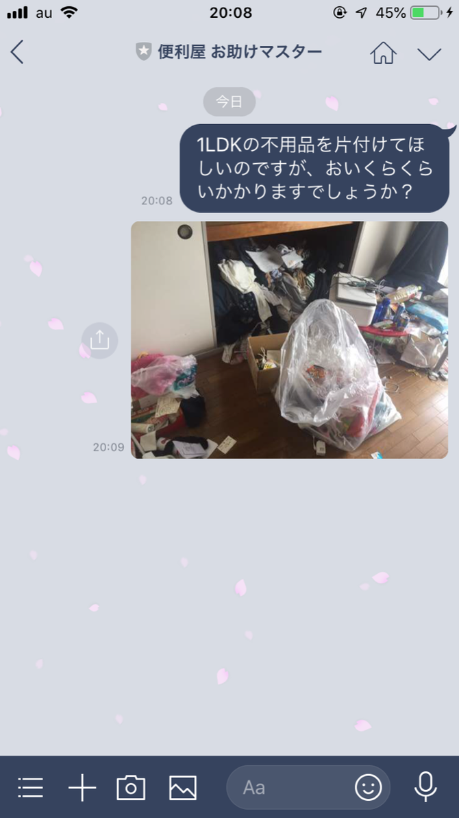 便利屋お助けマスター川崎多摩・麻生店ではお気軽にご相談いただけるようにラインからのお問い合わせも受け付けております。「電話はちょっと…」という場合でもお気軽にご相談ください。また、写真を添付していただくことで概算のお見積を提出することも可能です。